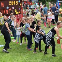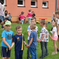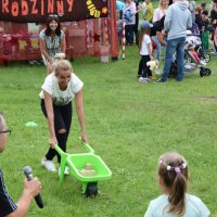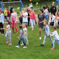 Zabawy ruchowe, taneczne, malowanie dzieciom buziek, puszczanie wielkich baniek mydlanych było zasługą animatorki- Martyny. Natomiast animatorki z MGOK- u w Pełczycach oprócz użyczenia i obsługi maszyny do robienia popcornu, przeprowadziły z dziećmi gry na olbrzymich, rozłożonych na trawie planszach.