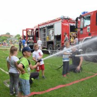 Wiele radości dostarczyła dzieciom możliwość przebywania w wozie w towarzystwie prawdziwych strażaków i zorganizowany przez nich tor przeszkód, za przejście którego nagrodą było markowanie gaszenia pożaru z wykorzystaniem prawdziwego węża strażackiego. Komendant OSP w Pełczycach Marcin Małysz Gortych oddelegował swoją brygadę, która udzielała dzieciom wskazówek, jak w praktyce posługiwać się sprzętem gaśniczym.