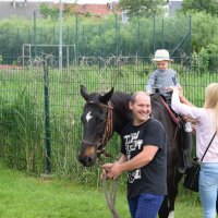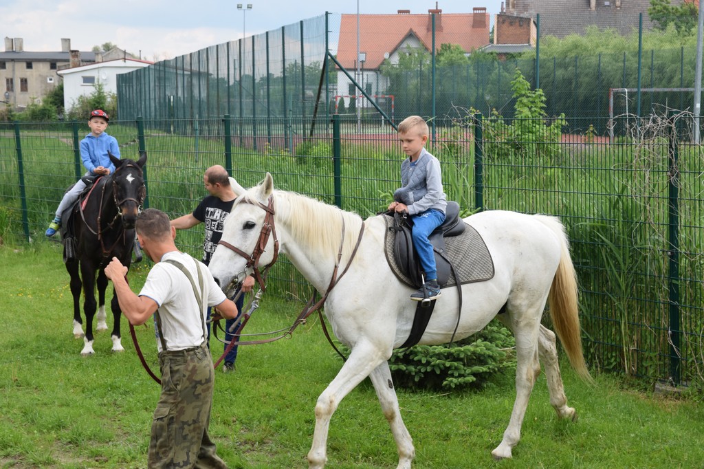Pięknie prezentowały się w naszym ogrodzie konie pana Mirosława Pasternaka. Dzieci miały do wyboru dużego lub małego konia, na którym mogły odbyć przejażdżkę pod opieką panów Rafała Grygiera, Michała Pasternaka i Rafała Horosza.