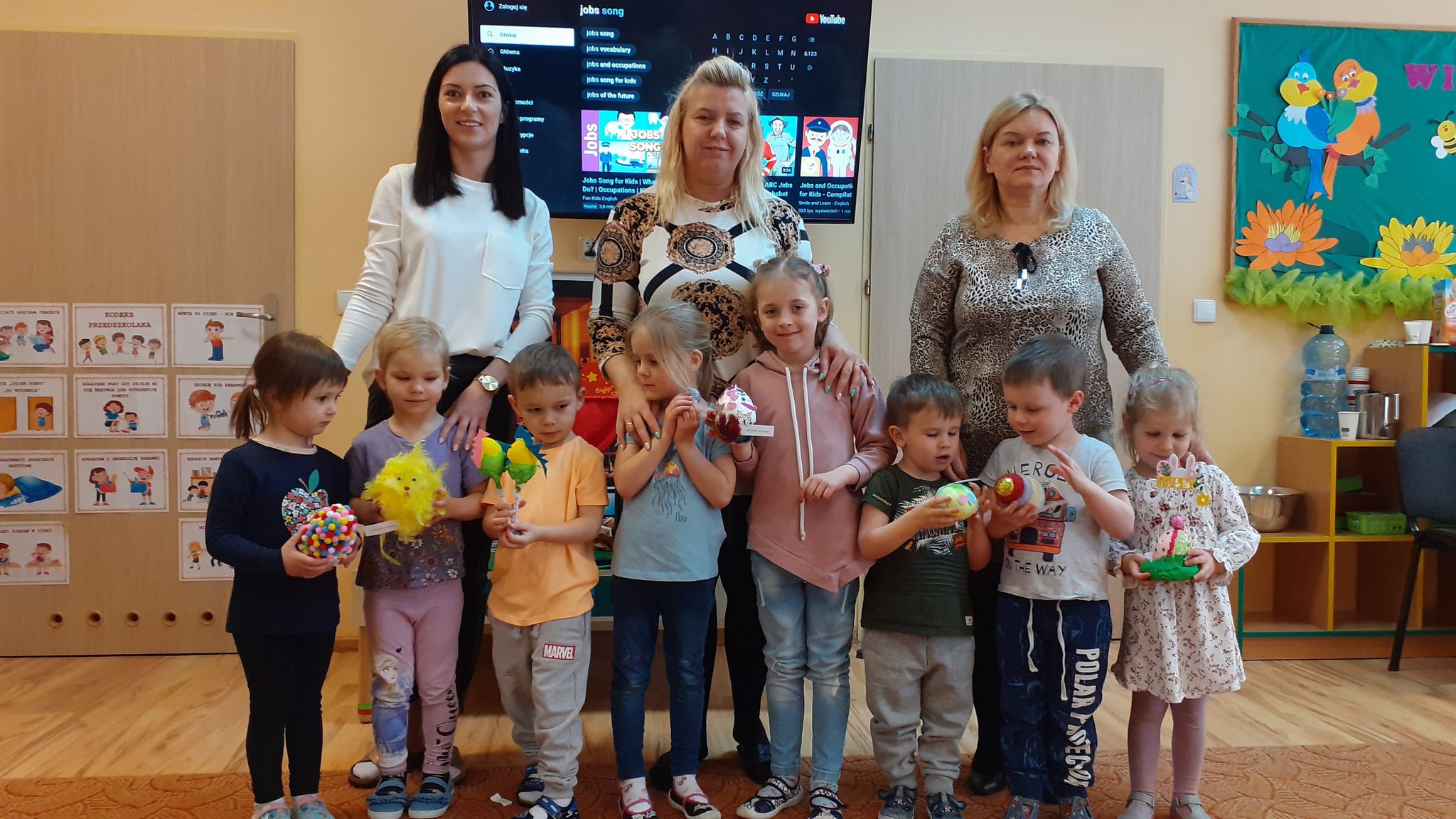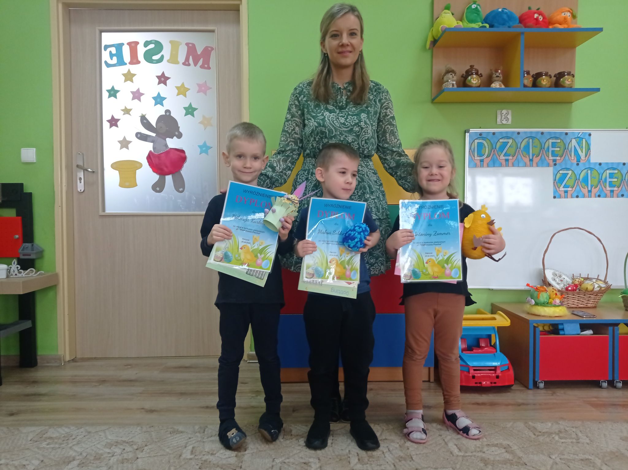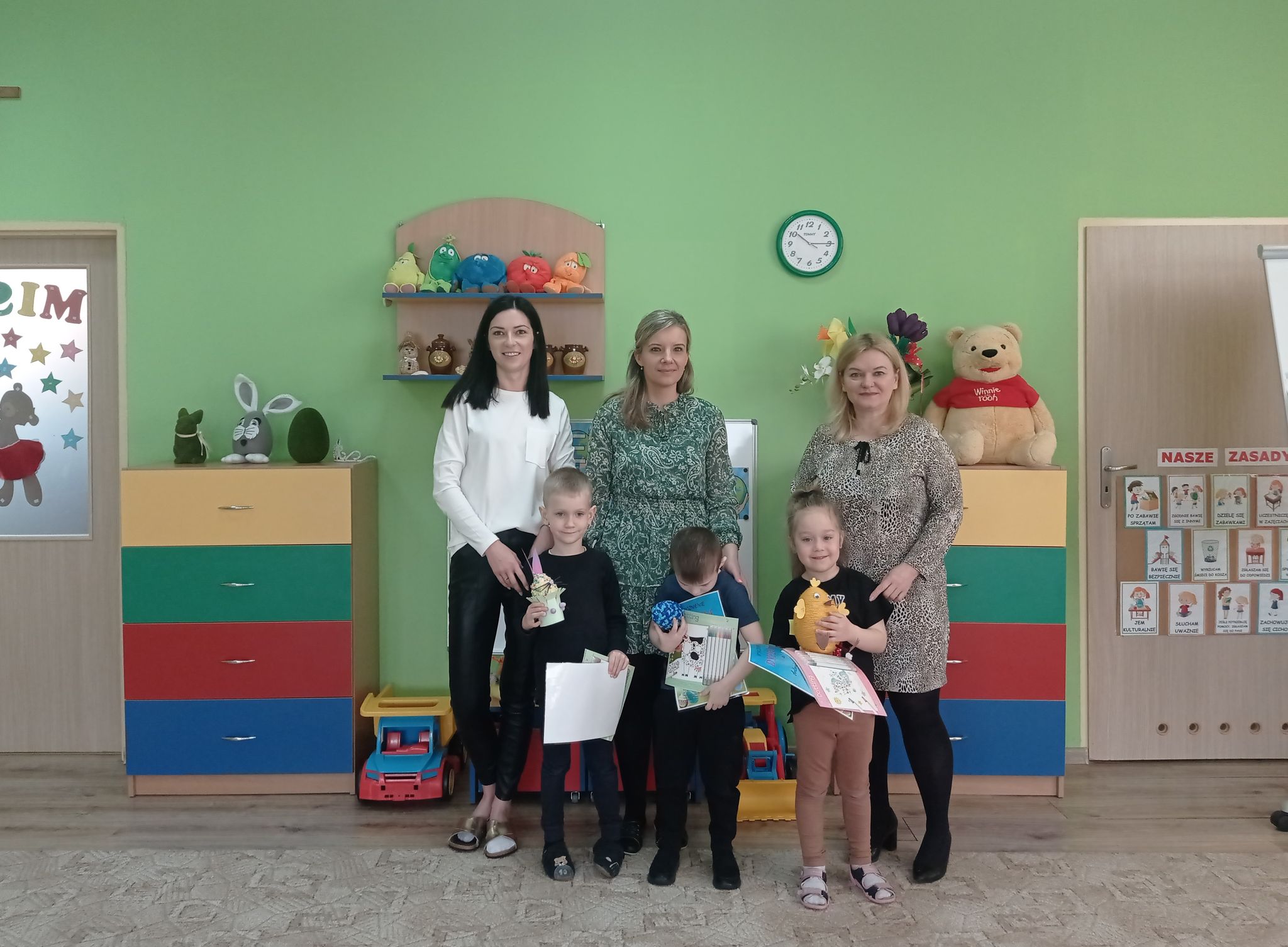Jury, składające się z pracowników przedszkola na czele z dyrektorem, uznało, że wszystkie dzieła zasłużyły na nagrodę. Doceniono inwencję rodziców i dzieci, efektowne wykonanie i chęć wspólnego działania z dzieckiem. Dzieci z radością odebrały nagrody z rąk pomysłodawczyni i głównej organizatorki konkursu pani Igi Chabowskiej. Nagrody ufundowała Rada Rodziców naszego przedszkola.