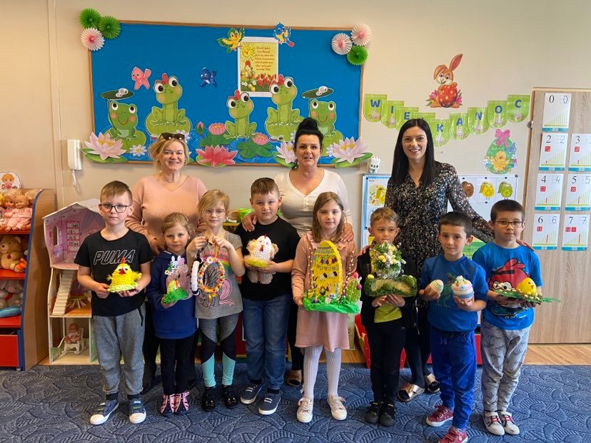 KONKURS PLASTYCZNY ,,WIELKANOCNA PISANKA”w ramach którego, rodzice wraz z dziećmi wykonywali przestrzenne prace w kształcie jajka, został rozstrzygnięty.