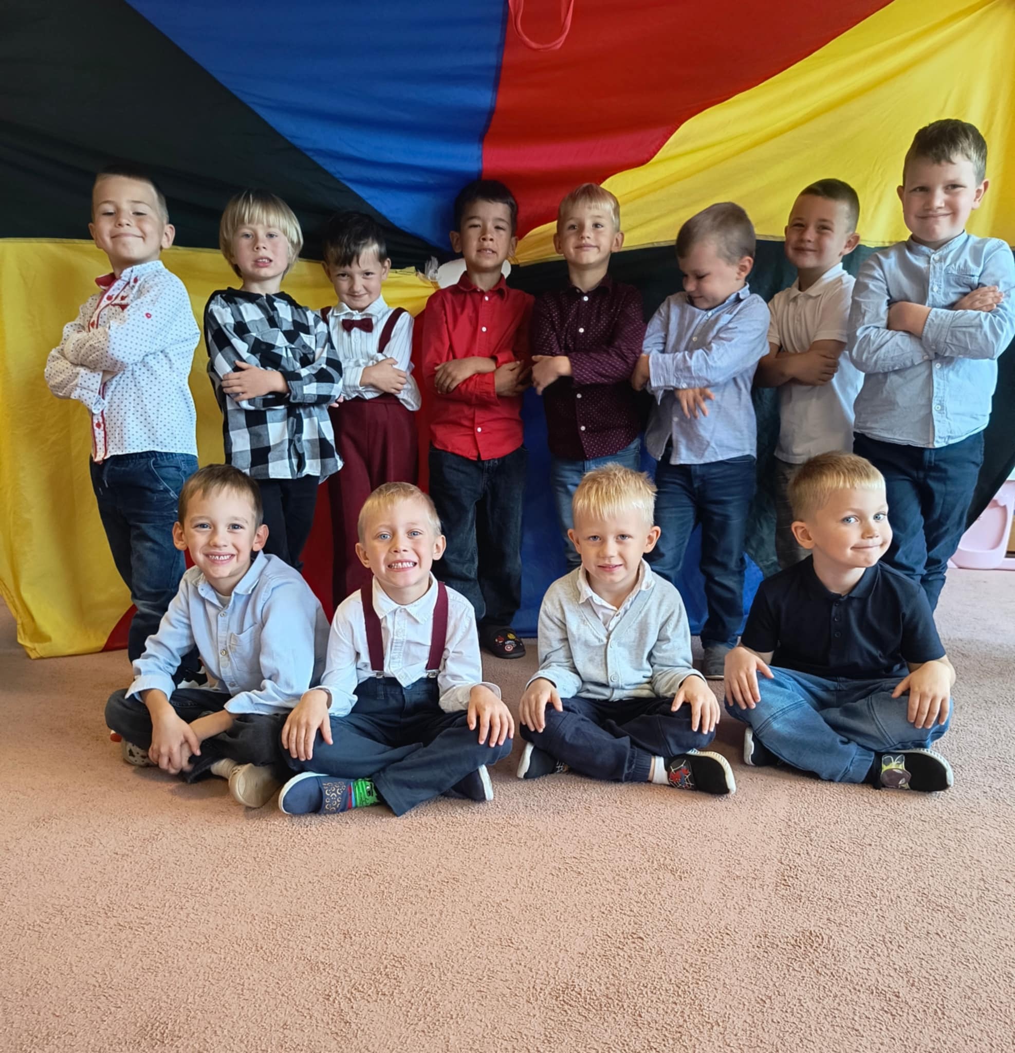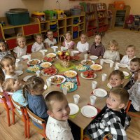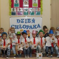 Najwięcej radości jednak sprawiły wspólne życzenia od koleżanek i Pań - chłopcy poczuli się wyjątkowo. Całość zakończyła się słodkim poczęstunkiem i pamiątkowymi zdjęciami.