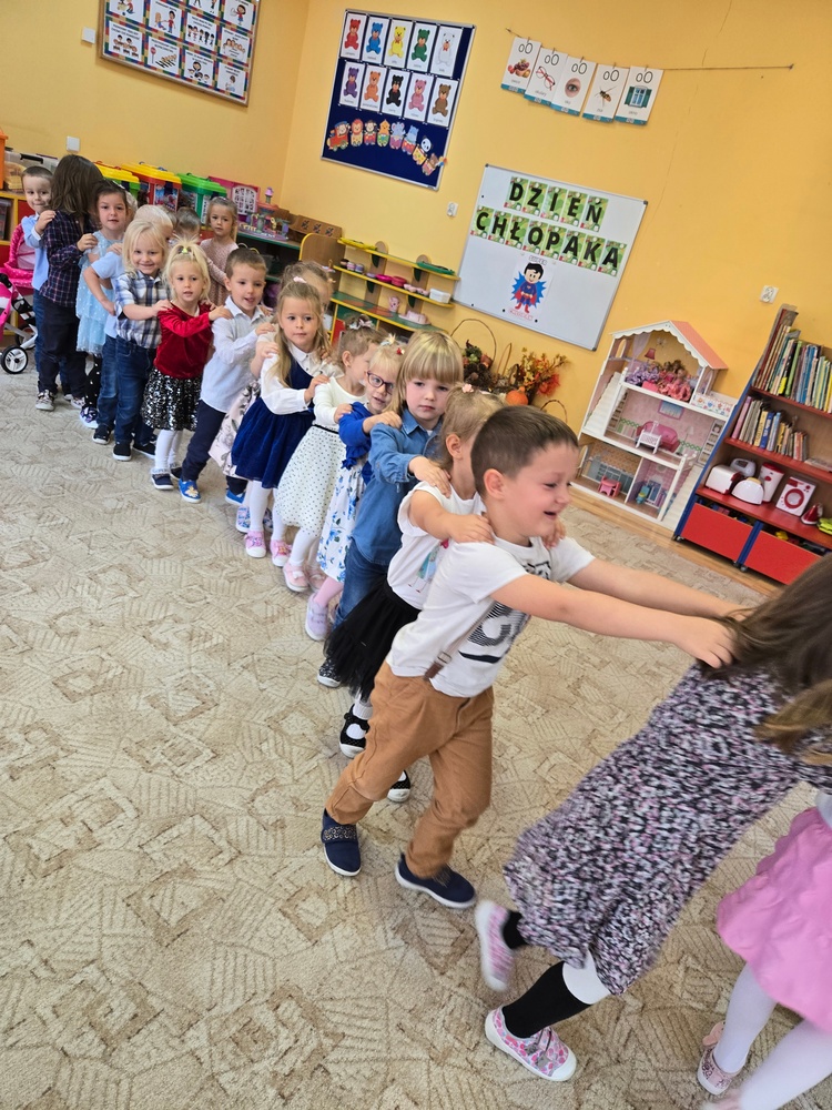 Dzień wypełniły wspólne zabawy integracyjne, w których chłopcy mogli wykazać się sprytem i odwagą. Nie zabrakło również tańców przy muzyce oraz kreatywnych zadań plastycznych.