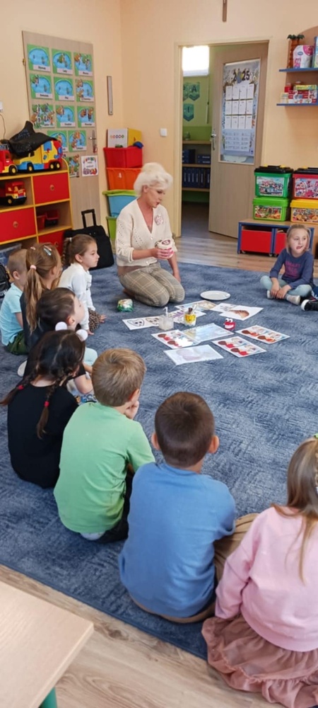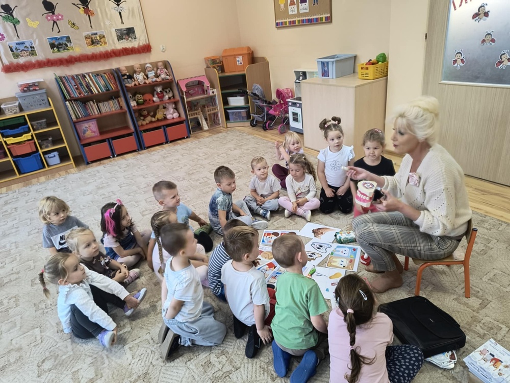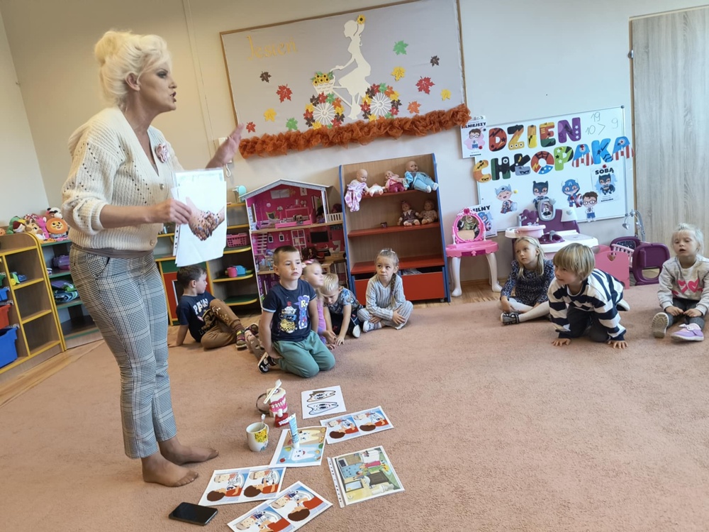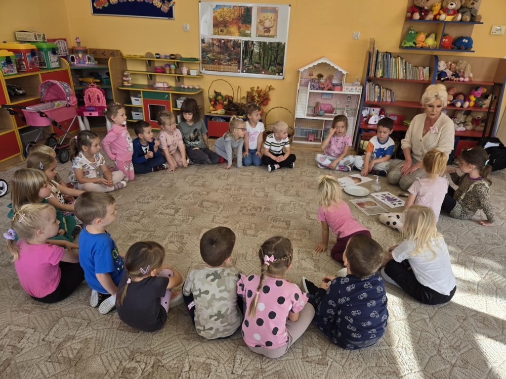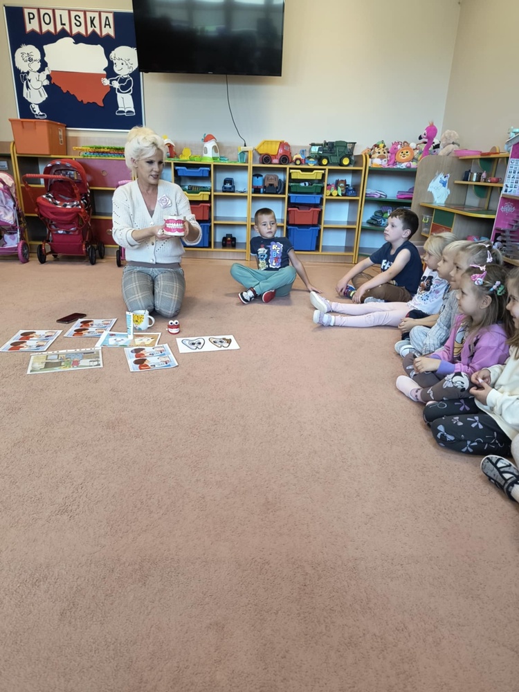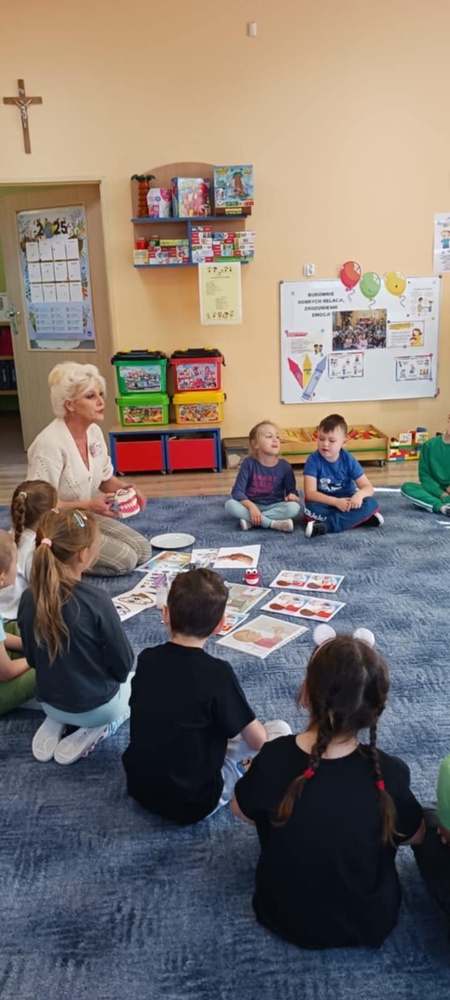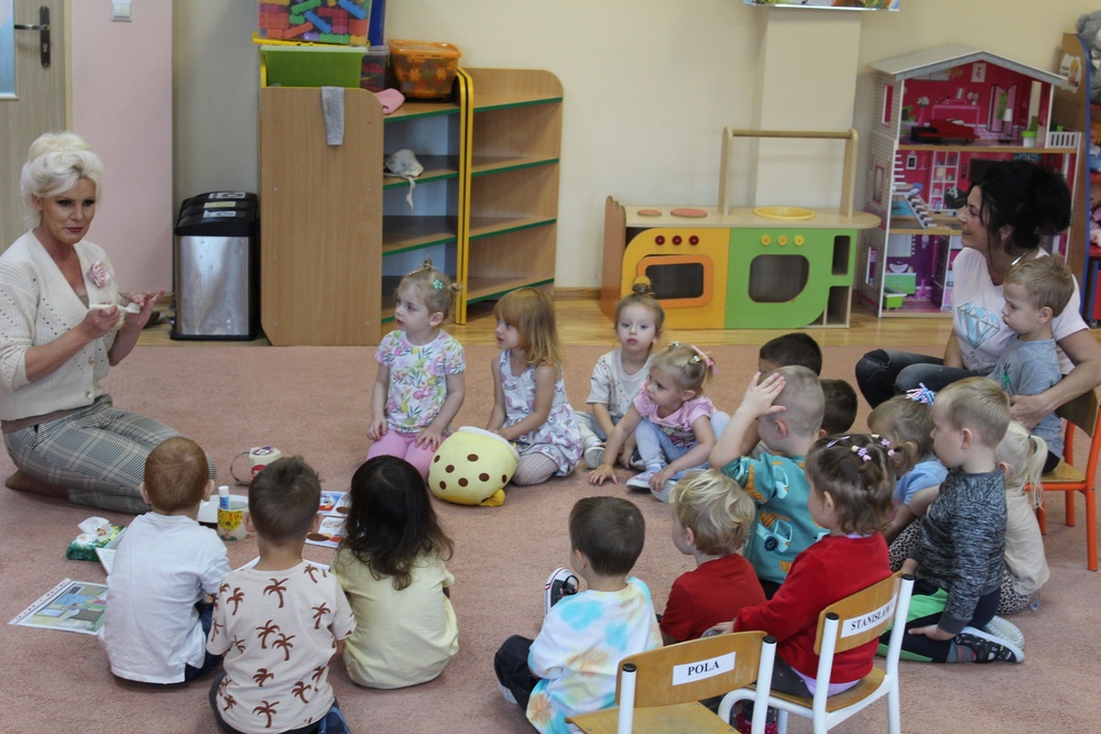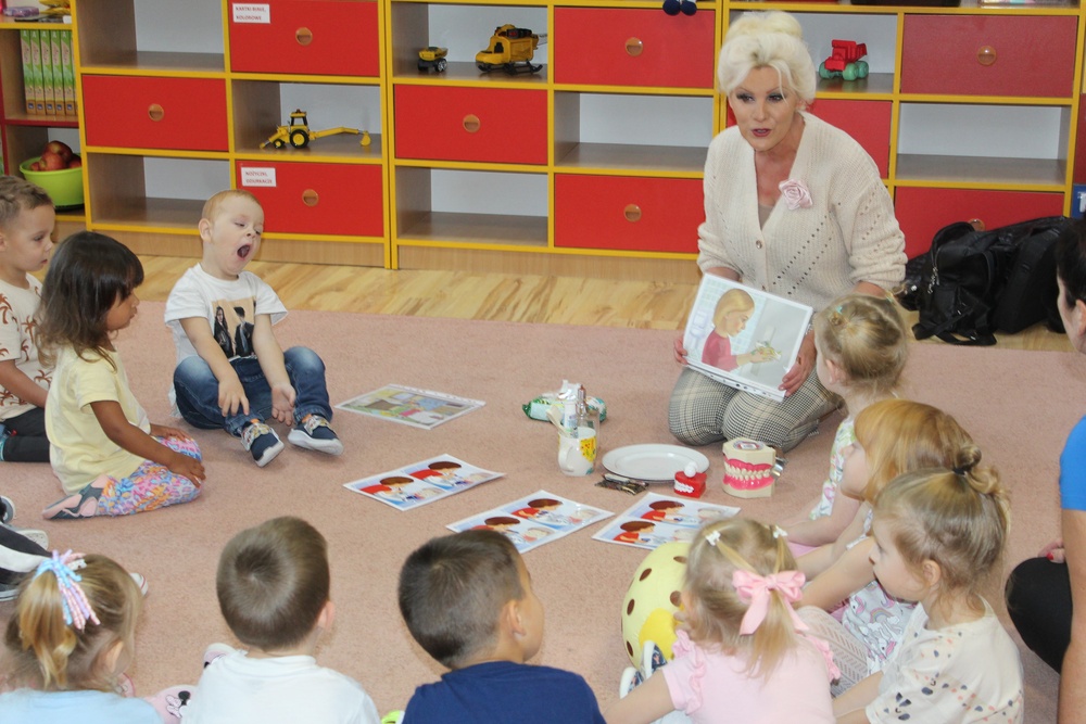 2 października w naszym przedszkolu odbyło się bardzo ciekawe spotkanie z Panią Renatą Boczek - pracownikiem Stacji Sanitarno - Epidemiologicznej w Choszcznie. Gość odwiedził wszystkie grupy, aby porozmawiać z dziećmi o higienie osobistej i o tym, jak ważne jest dbanie o zęby.