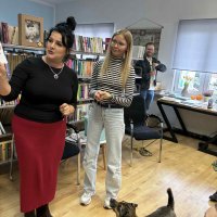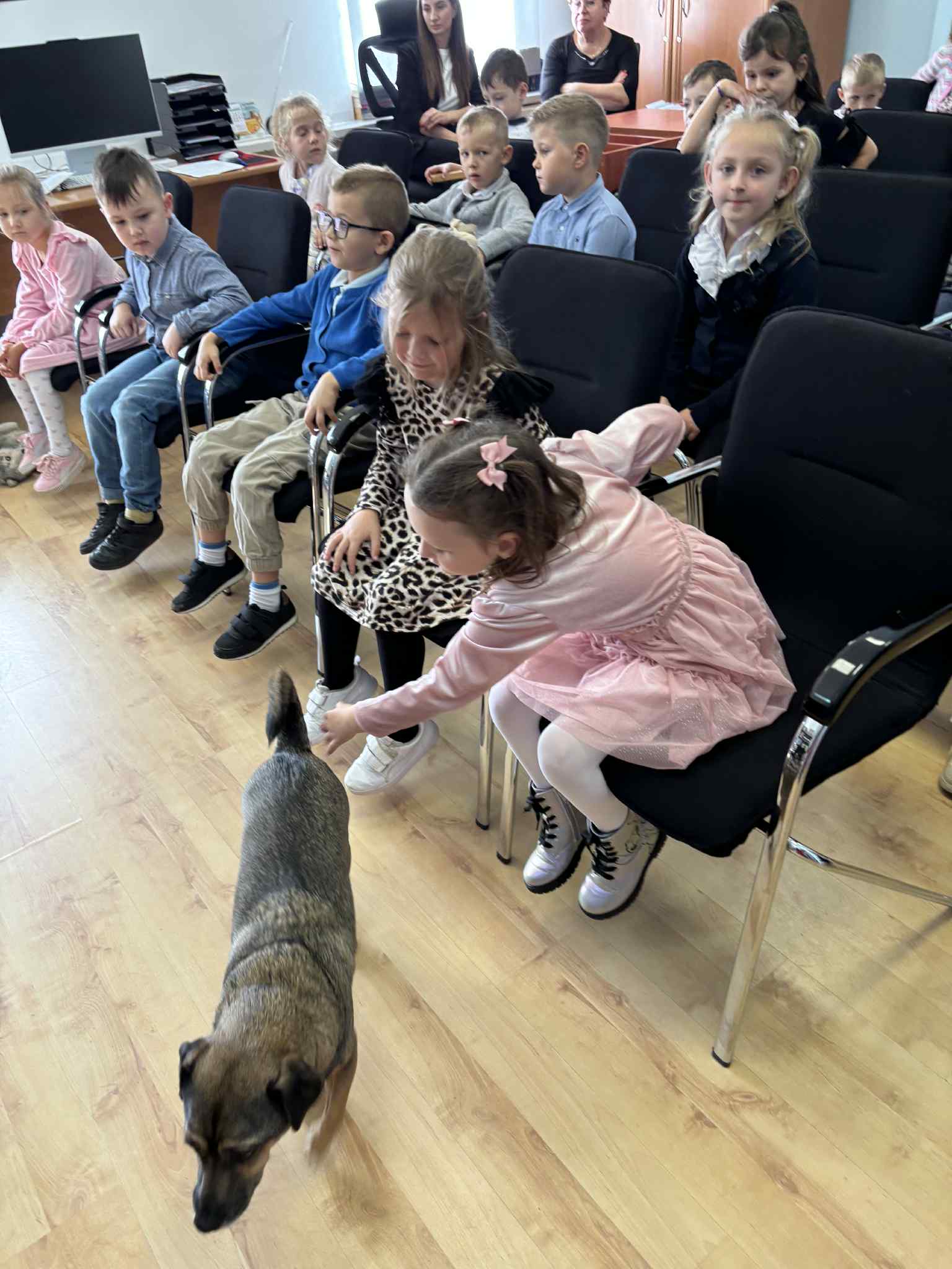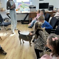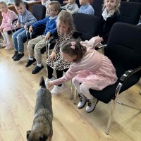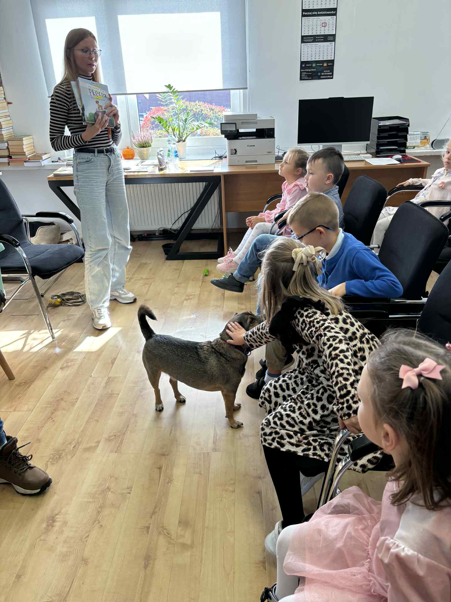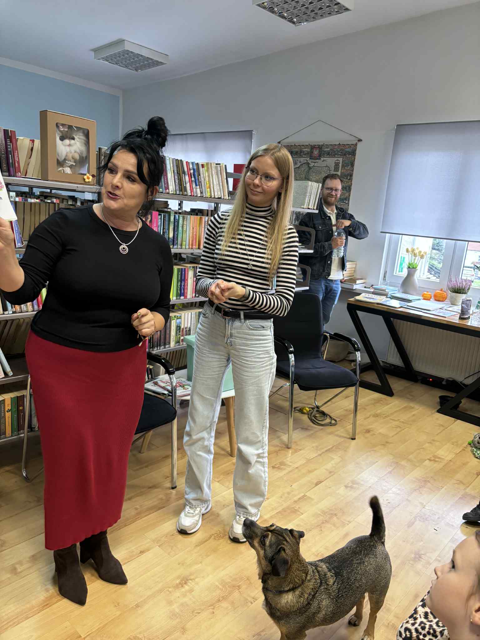 W bibliotece powitały nas Panie Bibliotekarki, a chwilę później pojawiła się sama autorka – uśmiechnięta, pełna energii i... nie była sama! Towarzyszył jej bohater książki – sympatyczny pies Precel! Dzieci z ogromnym zainteresowaniem słuchały fragmentów książki czytanych przez autorkę, a także opowieści o tym, jak powstaje książka, skąd wziął się pomysł na postać Precla i jakie przygody go spotykały.