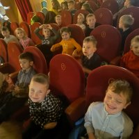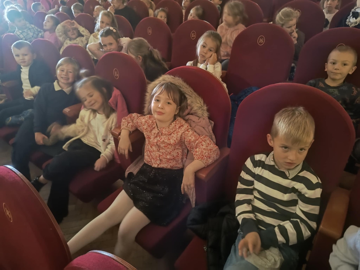 Już od rana w przedszkolu panowała radosna atmosfera – wszyscy z niecierpliwością czekali na wspólną podróż. Po krótkim przypomnieniu zasad bezpieczeństwa dzieci wsiadły do autokaru i wyruszyły w drogę. Podróż minęła szybko i wesoło – nie brakowało śpiewów oraz rozmów o tym, co zobaczymy na scenie.