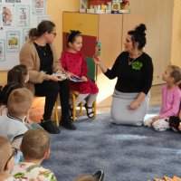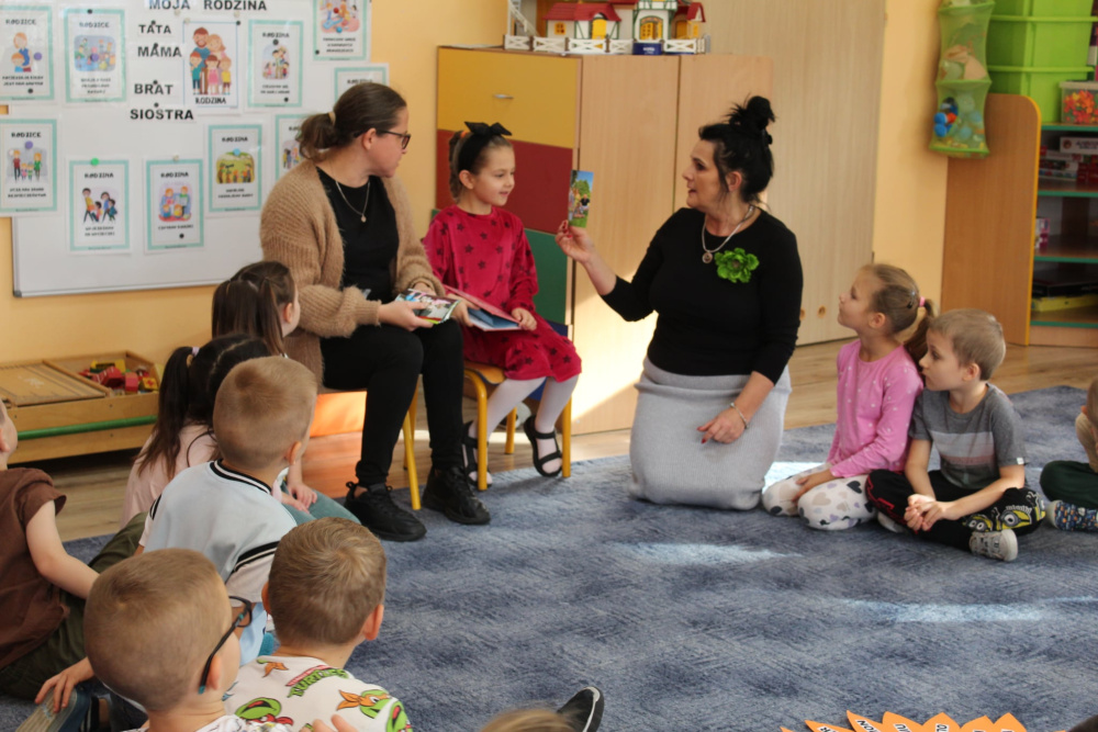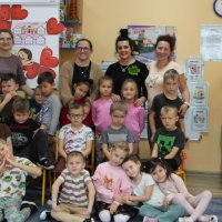 Goście – rodzice wspólnie ze swoimi pociechami dzielili się z nami opowieściami o swojej najbliższej rodzinie, przedstawiali rodzinne tradycje i zwyczaje. Pokazywali zdjęcia, pamiątki rodzinne. Dzieci z ogromnym zainteresowaniem słuchały opowieści, oglądały przyniesione albumy rodzinne, zdjęcia i pamiątki. Chętnie dzieliły się także swoimi historiami o bliskich. Spotkanie było pełne ciepła, uśmiechu i wzruszeń, a rozmowy o rodzinie pozwoliły dzieciom lepiej zrozumieć znaczenie miłości, szacunku i wspólnoty.