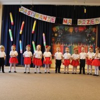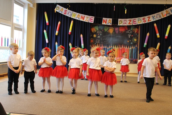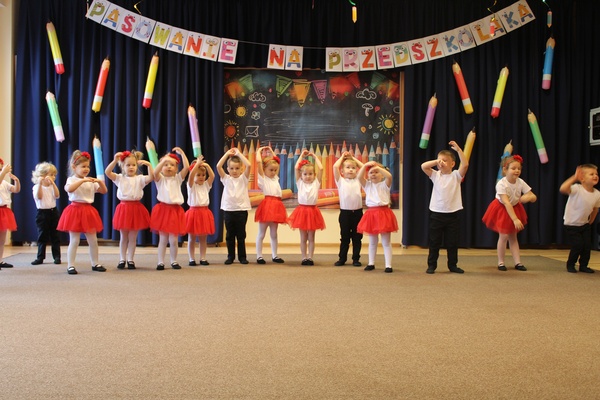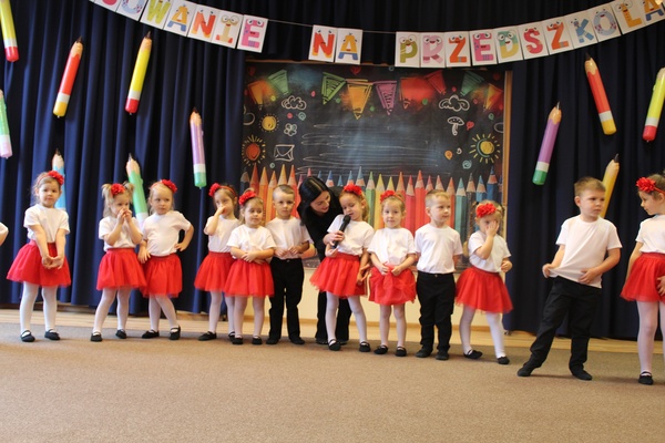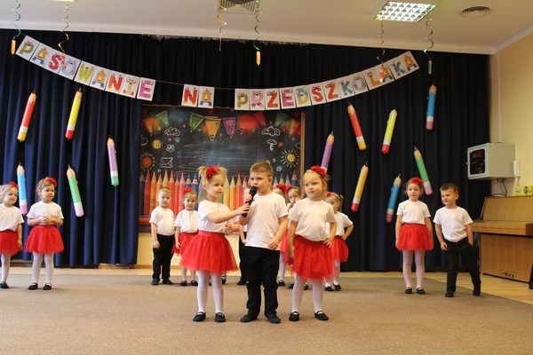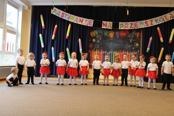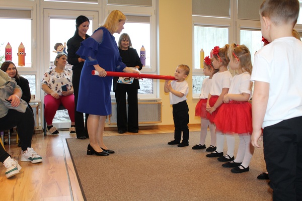 Uroczystość rozpoczęła się krótkim powitaniem, a następnie dzieci zaprezentowały przygotowany program artystyczny. Najmłodsi odważnie recytowali krótkie wierszyki, śpiewali piosenki i wykonywali proste układy ruchowe, często spoglądając z dumą na starsze dzieci, które pomagały im odnaleźć się na scenie.