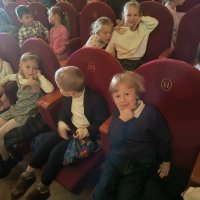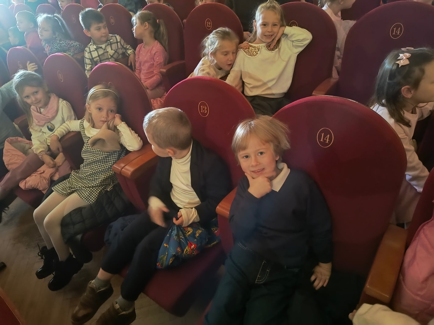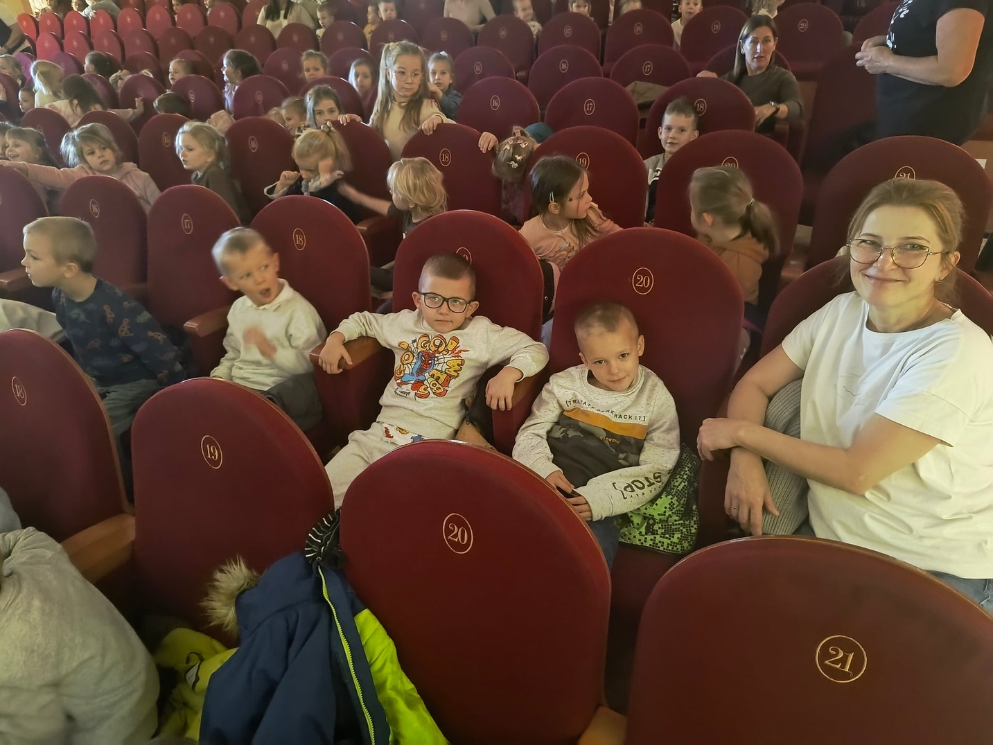 Już od rana w przedszkolu panowała radosna atmosfera – wszyscy z niecierpliwością czekali na wspólną podróż. Po krótkim przypomnieniu zasad bezpieczeństwa dzieci wsiadły do autokaru i wyruszyły w drogę. Podróż minęła szybko i wesoło – nie brakowało śpiewów oraz rozmów o tym, co zobaczymy na scenie.