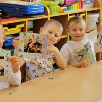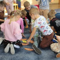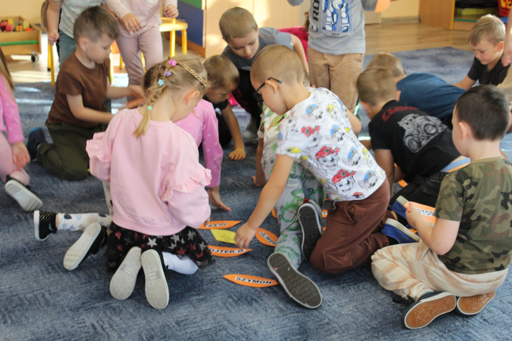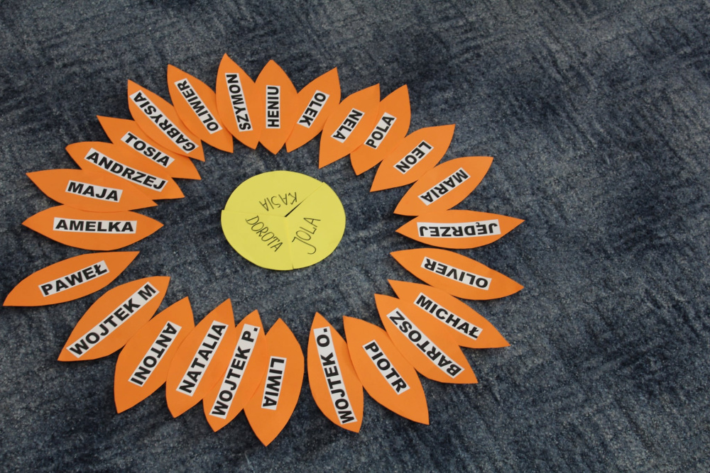 - wyszukiwały swoje imię spośród innych i wspólnie tworzyły z nich kwiat przyjaźni, symbolizujący jedność i współpracę,