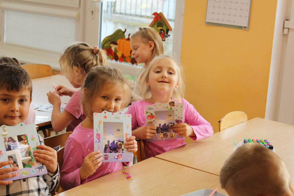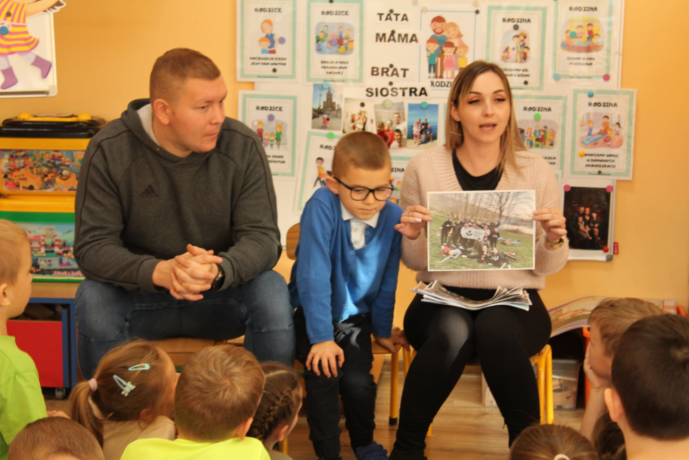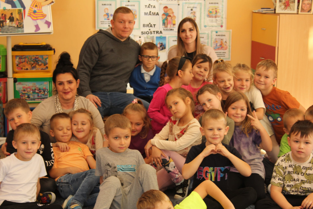 Goście – rodzice wspólnie ze swoimi pociechami dzielili się z nami opowieściami o swojej najbliższej rodzinie, przedstawiali rodzinne tradycje i zwyczaje. Pokazywali zdjęcia, pamiątki rodzinne. Dzieci z ogromnym zainteresowaniem słuchały opowieści, oglądały przyniesione albumy rodzinne, zdjęcia i pamiątki. Chętnie dzieliły się także swoimi historiami o bliskich. Spotkanie było pełne ciepła, uśmiechu i wzruszeń, a rozmowy o rodzinie pozwoliły dzieciom lepiej zrozumieć znaczenie miłości, szacunku i wspólnoty.