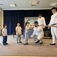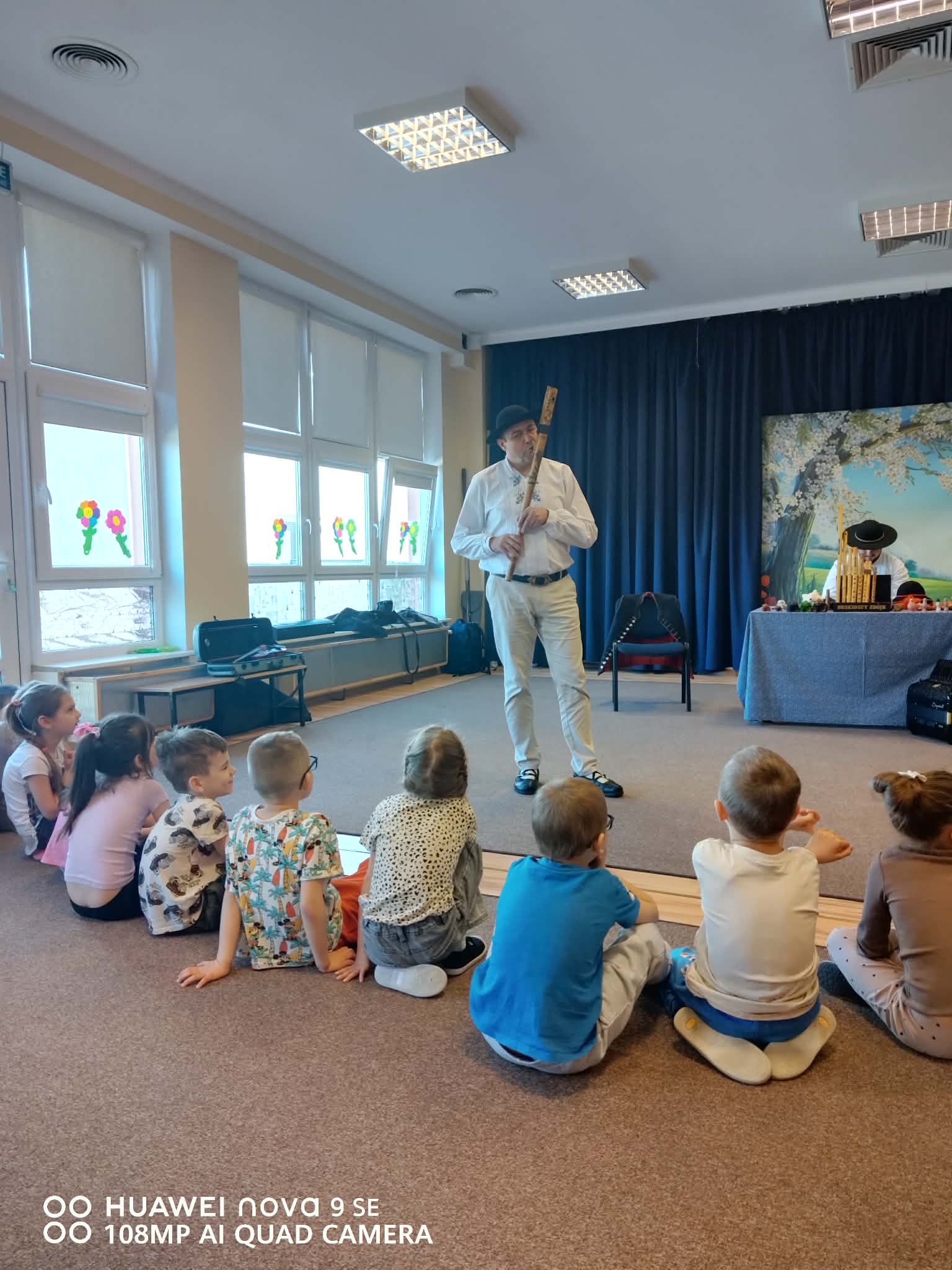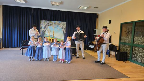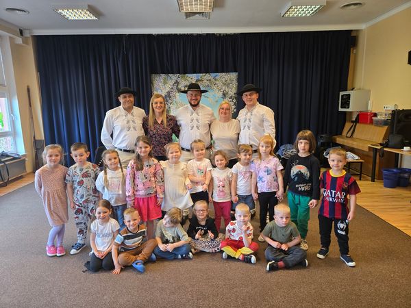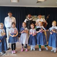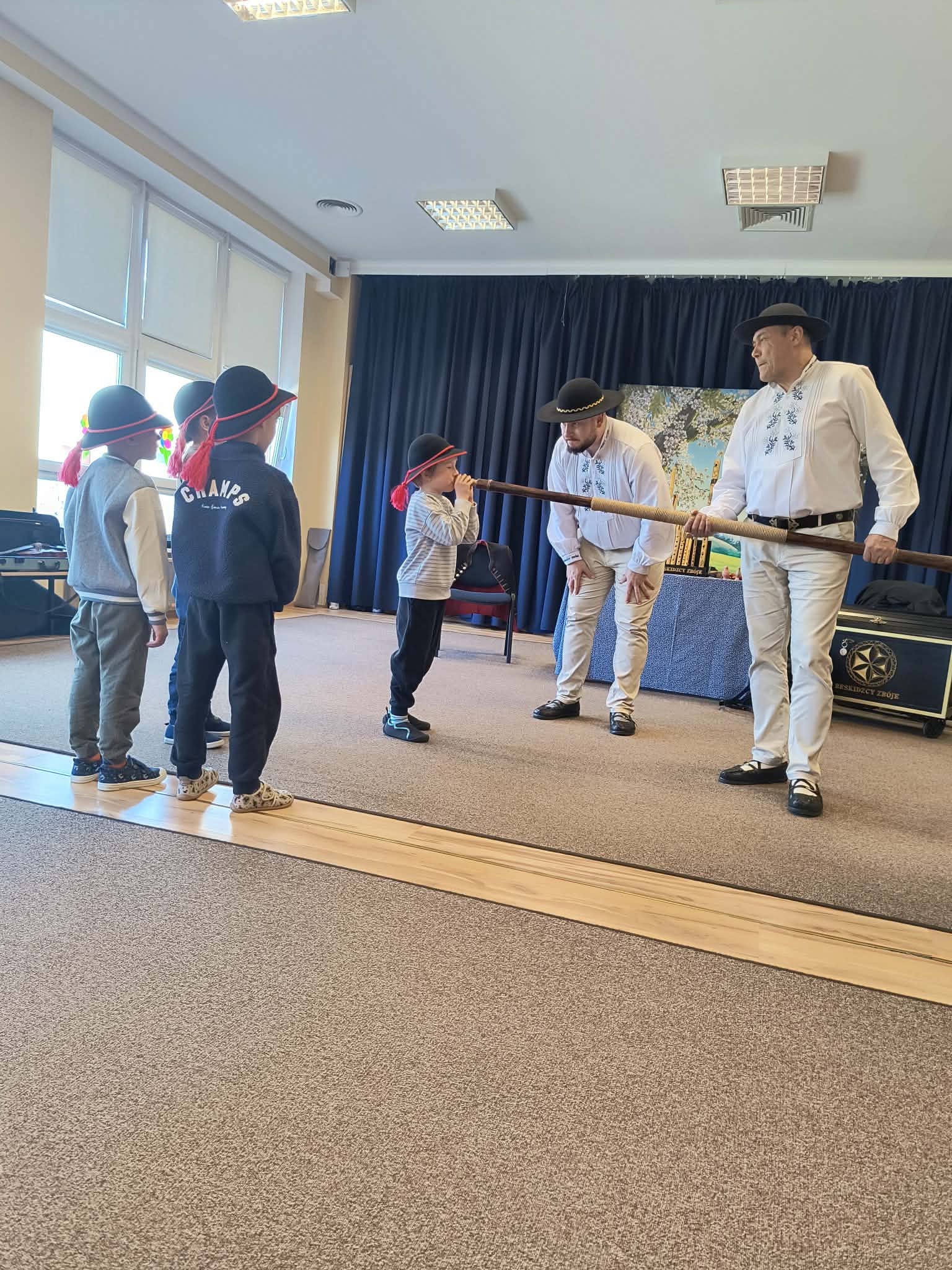 Dzieci uczestniczyły w wyjątkowym spotkaniu z góralską kapelą, podczas którego miały okazję poznać tradycyjne instrumenty ludowe oraz kulturę góralską. Muzycy zaprezentowali różnorodne instrumenty, takie jak drewniane fujarki, gliniane okaryny, długie trombity oraz małe gliniane ptaszki wydające dźwięki przypominające śpiew ptaków.