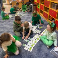 W trakcie zajęć odbyły się również różnorodne zabawy matematyczne z wykorzystaniem motywu żabek. Dzieci przeliczały żabki, porównywały ich liczebność, układały zbiory oraz rozwiązywały proste zadania matematyczne. Ćwiczenia te rozwijały umiejętności liczenia, logicznego myślenia oraz spostrzegawczości.